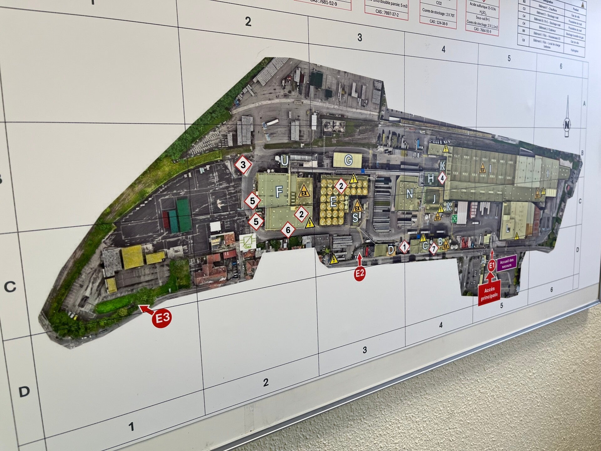 Plusieurs bâtiments industriels (A à N, J, K, etc.)